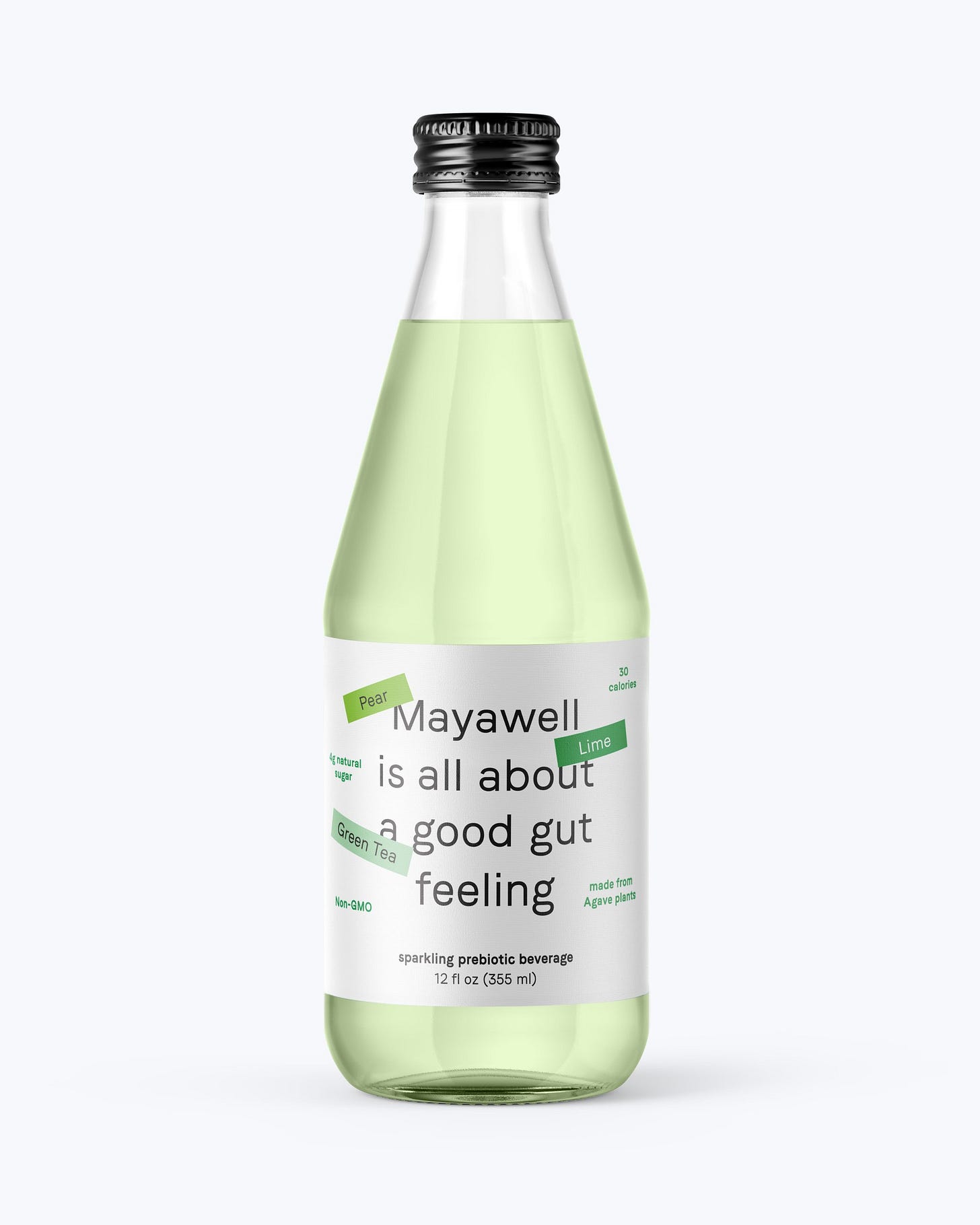 There is seldom anything sexy to say about a probiotic beverage, and often times the visual representation of this concept leaves much to be desired. I appreciate how Mayawell cuts to the chase and tells us what their beverage is for in clean typography. The colors are nice too. This I would drink.